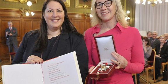 "Es freut mich ganz besonders eine Persönlichkeit auszeichnen zu dürfen, die sich der Frauenförderung und dem Aufbrechen von Rollenbildern verschrieben hat", betonte Stadträtin Gaal. Sie überreichte Vizerektorin Steiger am 31.1.2018 feierlich das Silberne Ehrenzeichen für Verdienste um das Land Wien.