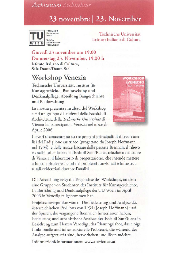 Dienstag, 08.September 2009, um 18.30 Uhr im Prechtlsaal der Technischen Universität Wien, Wien IV, Karlsplatz 13