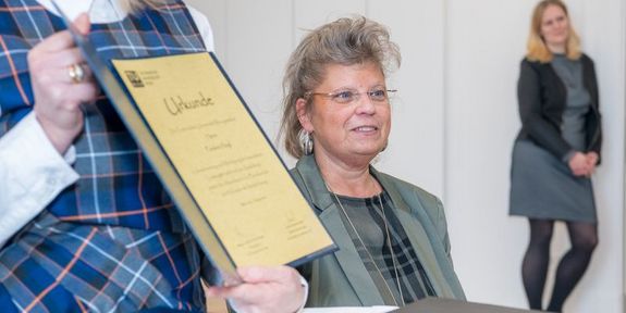 Anna Steiger, Vizerektorin für Personal und Gender der TU Wien, verlieh die Urkunden an die ausgezeichneten Lehrlinge.
