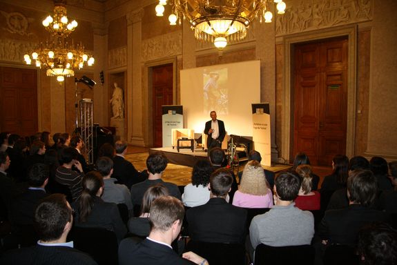 In seinem Vortrag vermittelte er Erfahrungen und Schlüsselerlebnisse über Gesetzmäßigkeiten aus dem Profisport und zeigt die Parallelen zum Berufsleben auf.