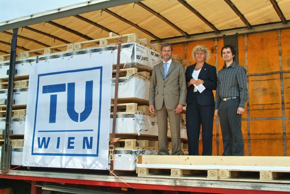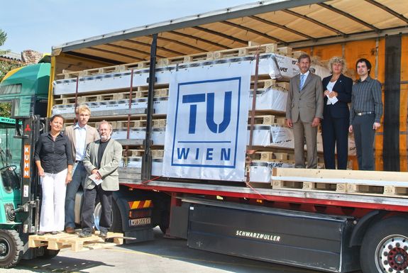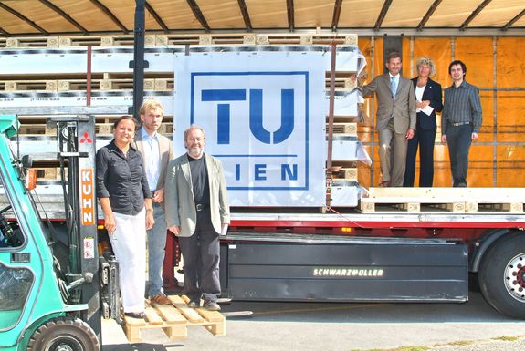 The winning project contains 800 used Euro-palettes (made of wood), which have been assembled in modules. The multifaceted and eco-friendly design was even patented in the meantime based on its innovative content. Moreover, the “Palette House” may also be adapted to a variety of situations by different embodiments. The version presented here is an energy-saving building design (a passive house design). Other applications are slums in developing countries, where the “do-it-yourself” qualities of this construction design are of great importance, or temporary constructions (such as Red Cross stations) in catastrophe areas. The TU Vienna participation was related to a project pursued by DI Dr. Karin Stieldorf at the Institute of Architecture and Design.