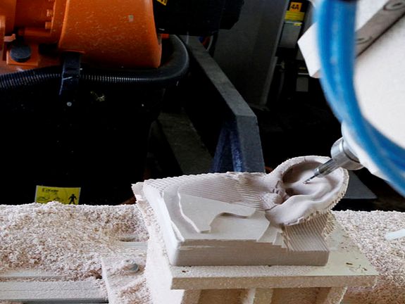 Rasch war klar, worin die schwierigste technische Herausforderung bei diesem Projekt besteht: „Das Ohr stellt uns aufgrund seiner Verwindungen vor die größten Probleme“, erklärt Florian Rist vom Institut für Kunst und Gestaltung. Aus diesem Grund wurde ein Pilotversuch unternommen. Ein einzelnes Ohr wurde mit 3D-Scanner und modernster Frästechnologie hergestellt. Dabei stellte sich heraus, dass die Herausforderungen durchaus bewältigbar sind – das Ohr ist kein Problem. In weiterer Folge soll nun eine ganze Reihe von Kopf-Skulpturen entstehen.