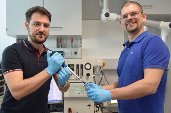 Gareth Parkinson (links) und Jakub Zdenek im Labor