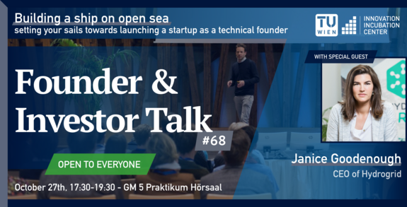 The Founder & Investor Talks organized by the Innovation Incubation Center (i²c) at TU Wien enable the audience to learn first-hand from experienced founders, investors, and innovators and get inspired by their success (and failure) stories. Our guest speakers share their international experiences, dos & don’ts and lessons learned during an inspiring talk. The attendees will also have the chance to ask all the burning questions during an interactive Q&A.