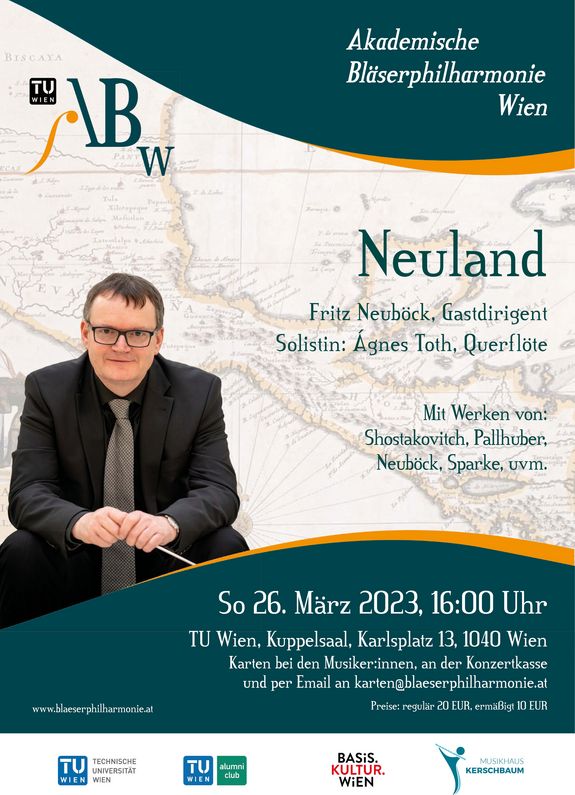 So sieht das auch die Akademische Bläserphilharmonie Wien und konnte für das Frühlingskonzert am 26. März den oberösterreichischen Komponisten Fritz Neuböck als Gastdirigenten gewinnen. Das Programm führt von Shostakovich über Musen und Naturelementen zu Napoleon und Werken des Dirigenten selbst; so etwa die Vertonung der Insel Alcatraz!